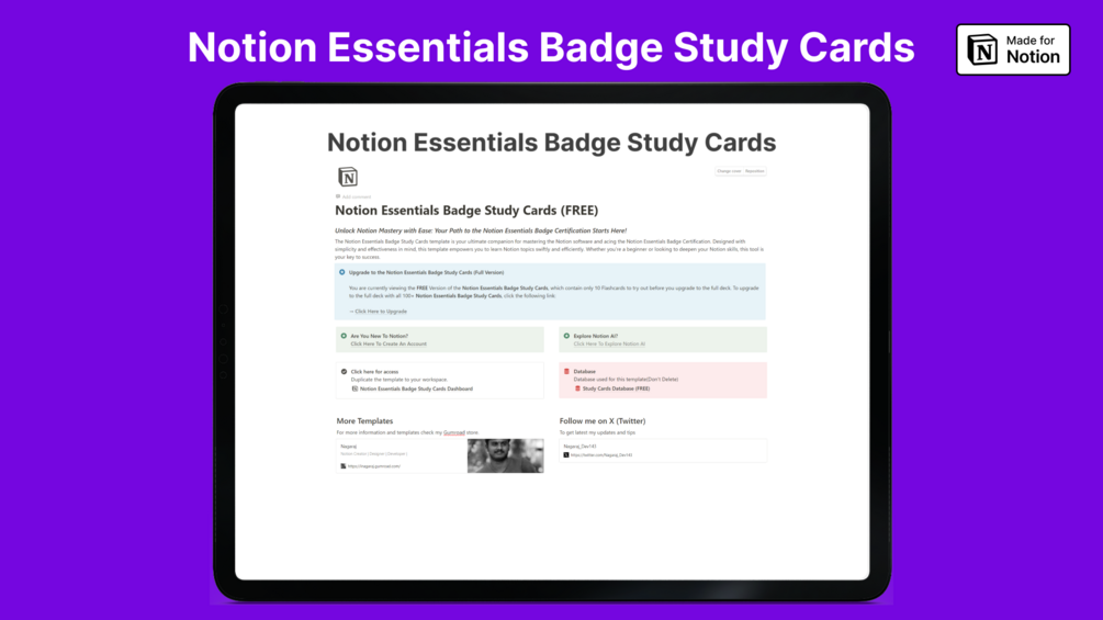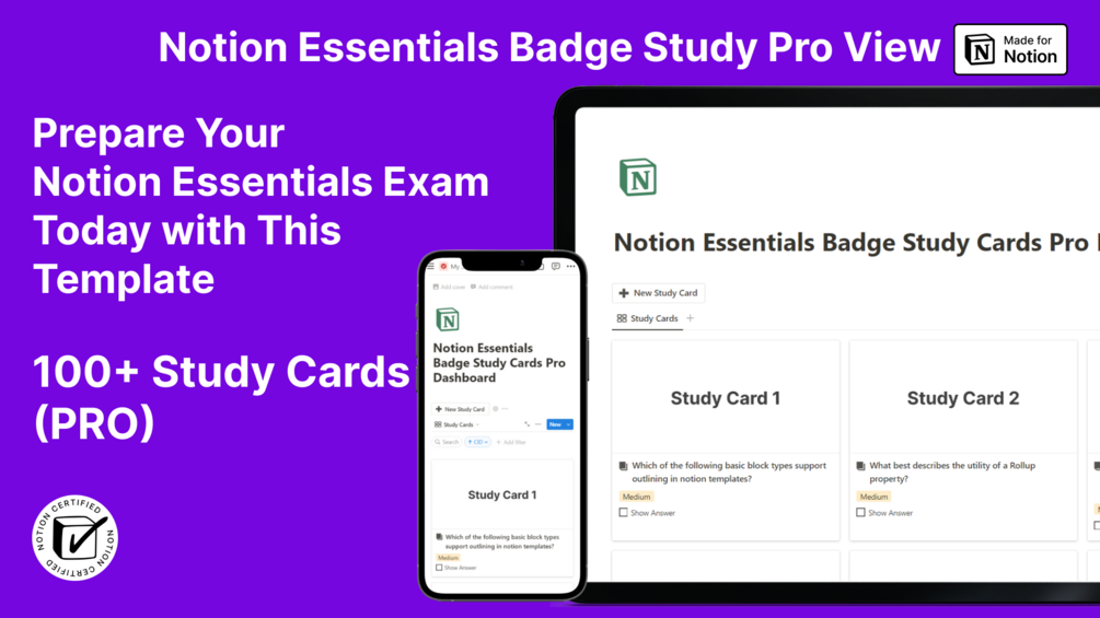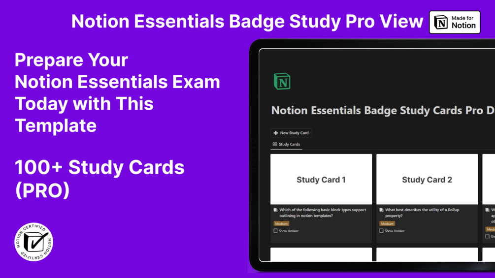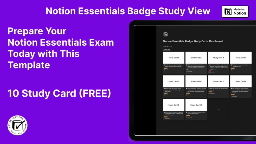 Join the ranks of Notion experts today! Invest in your future success with our "Notion Essentials Badge Study Cards" template. It's not just a template; it's your personalized learning companion. Get ready to ace that exam and unlock the full potential of Notion!