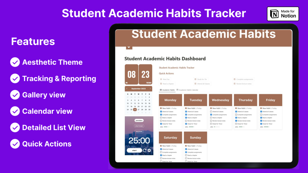 Whether you're a high school student, a college student, or a lifelong learner, this Notion template can be tailored to meet your unique academic needs. It promotes consistency, discipline, and efficiency in your study routine, helping you reach your academic potential.