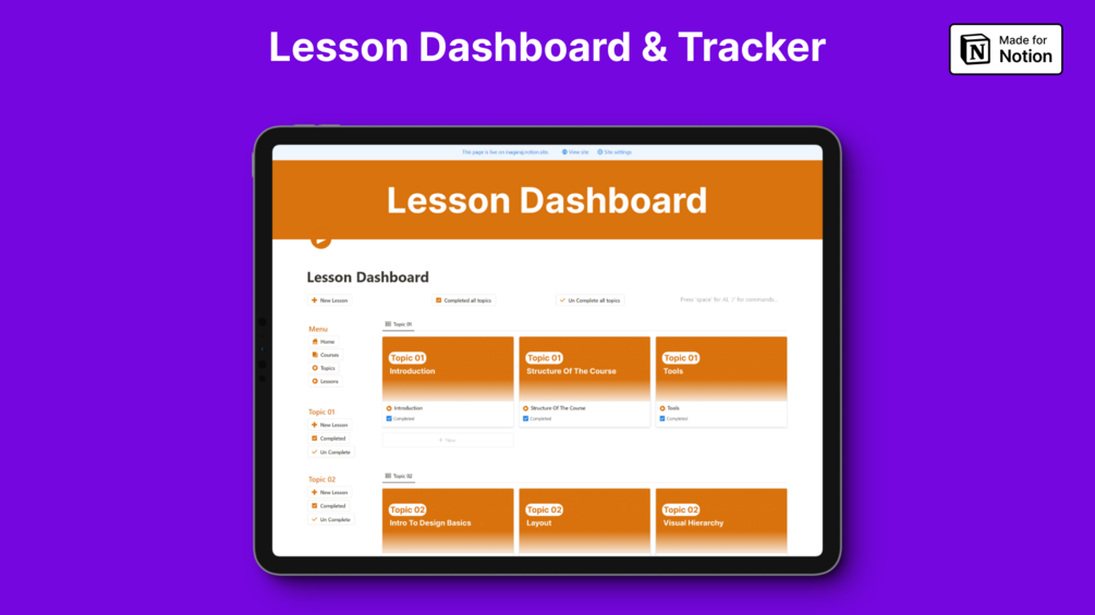- Effortlessly track lesson progress within each topic.